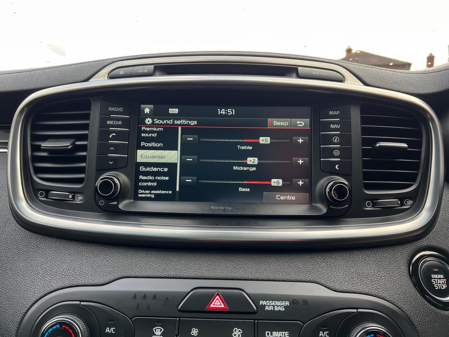 12V Power Socket, 12V Power Socket - 2nd Row, 18in Alloy Wheels, 3 x Passenger Assist Grips, 60-40 Split Folding 2nd Row Seats, 8in Touchscreen, 8in Touchscreen Satellite Navigation with European Mapping, ABS - Anti Lock Braking System, Adaptive Front Lighting System, Airbags - Driver, Airbags - Front Side, Airbags - Passenger, Airbags - Twin Curtain, Alarm System, All-Round Height Adjustable Headrests, Ambient Light - Front Centre Console Tray Illumination, Armrest - Rear Centre, Auto Dimming Rear-View Mirror, Automatic Headlight Control, BAS - Brake Assist System, Bluetooth with Music Streaming, Bluetooth with Voice Recognition, Body Coloured Bumpers, Body Coloured Door Mirrors, Centre Console Cupholders, Centre Console Storage, Child Safety Rear Door Locks, Cornering Lights, Cruise Control, Cupholders - Rear, DAB Radio, Dash Illumination Dimmer Switch - Rheostat, Deadlocks, Door Handles - Chrome, Drive Mode Select, Dual Automatic Air Conditioning with Ioniser, EBD - Electronic Brakeforce Distribution, ESC - Electronic Stability Control, Electric Parking Brake with Auto Hold Function, Electric Windows - Front and Rear with Auto Up-Down Function, Electrically Folding Door Mirrors, Emergency Stop Signalling - ESS, Engine Immobiliser, Engine Start-Stop Button, European Mapping, External Amp, External Temperature Display, Front Cabin Map Light, Front Centre Console Armrest, Front Door Courtesy Reflectors, Front Fog Lights, Front Passenger Airbag Cut Off Switch, Front Seatback Pockets, Front and Rear Door Storage, Full Size Alloy Spare Wheel, Glovebox with Illumination, Head Rests - Front Active, Headlight Levelling System, Headlight Washers, Headlights - Xenon with Auto Levelling, Heated Front Seats, Heated Outer Rear Seats, Heated Steering Wheel, Hill-Start Assist Control - HAC, ISOFIX Child Seat Top Tethers and Anchor Fixings, Impact Sensing Auto Door Unlocking, Infinity Premium Sound System, Integrated Indicator Lights LED in Door Mirrors, Interior Door Lock-Unlock Function, LED Daytime Running Lights, LED High Mounted Brake Light, Lane Departure Warning System, Leather Trimmed Gear Shift, Leather Trimmed Steering Wheel, Locking Wheel Nuts, Low Level Washer Fluid Warning, Luggage Compartment - Hooks, Luggage Compartment - Load Cover, Luggage Compartment - Net, Motor Driven Power Steering - MDPS, Mouldings - Side Sill - Black, Panoramic Sunroof - Electric One Touch with Safety Function, Pedals - Alloy, Pollen Filter, Privacy Glass - Rear Windows and Tailgate, RDS Radio with CD and MP3, Radiator Grille - Dark Metallic Mesh, Rain Sensing Front Wipers, Rear Air Ventilation, Rear Lights - LED, Rear Parking Sensors, Rear Side Passenger Lights, Rear Spoiler, Reversing Camera System, Roof Rails, Satin Chrome Interior Door Handles, Scuff Plates - Aluminium, Scuff Plates - Illuminated, Seats - 50-50 Split Flat Folding 3rd Row, Seats - Drivers 8-Way Power Adjustment, Seats - Drivers Lumbar Support, Seats - Power Front Sliding and Reclining, Side Sill - Chrome Garnish, Smart Key Entry System, Smart Power Tailgate, Speakers x10, Speed Limiter, Speed Sensing Auto Door Locking, Speed and Multifunction LCD Full Colour Display, Steering Wheel Mounted Audio Controls, Subwoofer, Sunvisors with Illuminated Vanity Mirrors and Ticket Holder, Suspension - Self-Levelling, TSA - Trailer Stability Assist, Tilt and Telescopic Steering Wheel Adjustment, Tinted Glass, Traction Control, Traffic Message Channel - TMC, Trip Computer, Tyre Pressure Monitoring System - TPMS, USB and AUX Ports, VSM - Vehicle Stability Management, Wide-View Door Mirrors