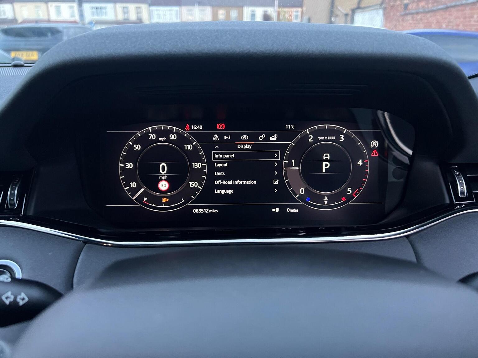 Auto-Dimming Interior Rear View Mirror, Auto-Dimming Power Fold - Heated Door Mirrors with Memory and Approach Lights, Automatic Headlight Levelling, Automatic Headlights, Autonomous Emergency Braking, Black Gearshift Paddles, Bluetooth Connectivity, Body Coloured Roof, Brake Pad Wear Indicator, Bright Metal Pedals, Carpet Mats, Chrome Treadplates, Clear Exit Monitor, Cruise Control and Speed Limiter, Customer Configurable Autolock, D150 Badge, DAB - Digital Audio Broadcast, DSC - Dynamic Stability Control, Driver Condition Monitor, EBA - Emergency Brake Assist, EBD - Electronic Brake-Force Distribution, EPAS - Electronic Power Assisted Steering, ETC - Electronic Traction Control, Efficient Driveline, Electric Parking Brake, Electric Windows with One-Touch Open-Close and Anti-Trap, Evoque and R-Dynamic Badge, Flush Deployable Door Handles, Front and Rear Animated Directional Indicators, HDC - Hill Descent Control, Headlights - Automatic High Beam Assist, Headlining - Ebony Morzine, Heated Rear Window with Timer, Hill Launch Assist, InControl - Remote App, InControl Apps, Interactive Driver Display, Intrusion Sensor, Lane Keep Assist, Leather Steering Wheel, Locking Wheel Nuts, Low Traction Launch, Manually Adjustable Steering Column, Navigation Pro, Overhead Lighting Console, Overhead Stowage for Sunglasses, Park Assist, Passive Front Headrests, Passive Suspension, Power Operated Child Locks, Power Socket Pack 1, Powered Tailgate, Premium LED Headlights with Signature DRL, Pro Services and Wi-Fi Hotspot, Push Button Start, R-Dynamic Exterior Pack, RSC - Roll Stability Control, Rain Sensing Windscreen Wipers, Rear Air Vents, Rear Fog Lights, Rear ISOFIX, Rear Traffic Monitor, Rear View Camera, SE Badge, Seat Belt Reminder, Seats - Rear Centre Head Restraint, Side Curtain Airbags and Thorax, Smart Settings, Sound System, Standard Roof, Sun Visors - Illuminated Vanity Mirrors, TPMS - Tyre Pressure Monitoring System, Tailgate Spoiler, Terrain Response 2, Torque Vectoring, Touch Pro Duo, Traffic Sign Recognition and Adaptive Speed Limiter, Trim Finish - Gradated Linear Dark Aluminium, Twin Front Cupholders with Cover, Twin Sliding Front Centre Armrest, Two-Zone Climate Control, Tyre Repair System, Voice Control, Windscreen - Heated, Windscreen Washer Jets - Heated, 14-way - Heated Electric Memory Front Seats, 20in Alloy Wheels - 5 Split-Spoke - Style 5079 - Gloss Sparkle Silver, 360 Degree Parking Aid, 40-20-40 Split Fold Rear Seat, ABS - Anti Lock Braking System, ATPC - All Terrain Progress Control, Airbags - Driver Knee, Airbags - Front - Driver and Front Passenger, All Season Tyres, Ambient Interior Lighting, Android Auto, Apple CarPlay