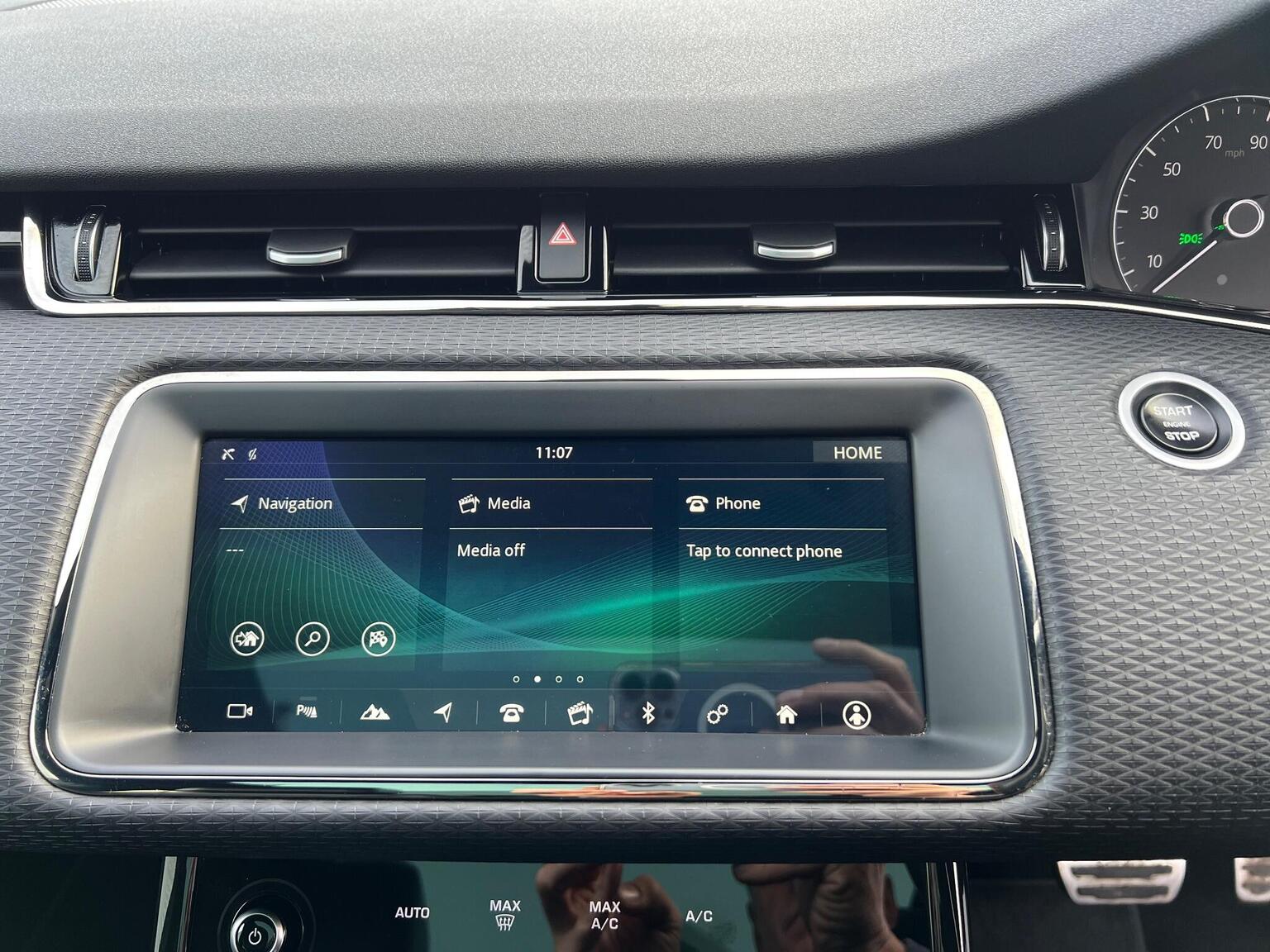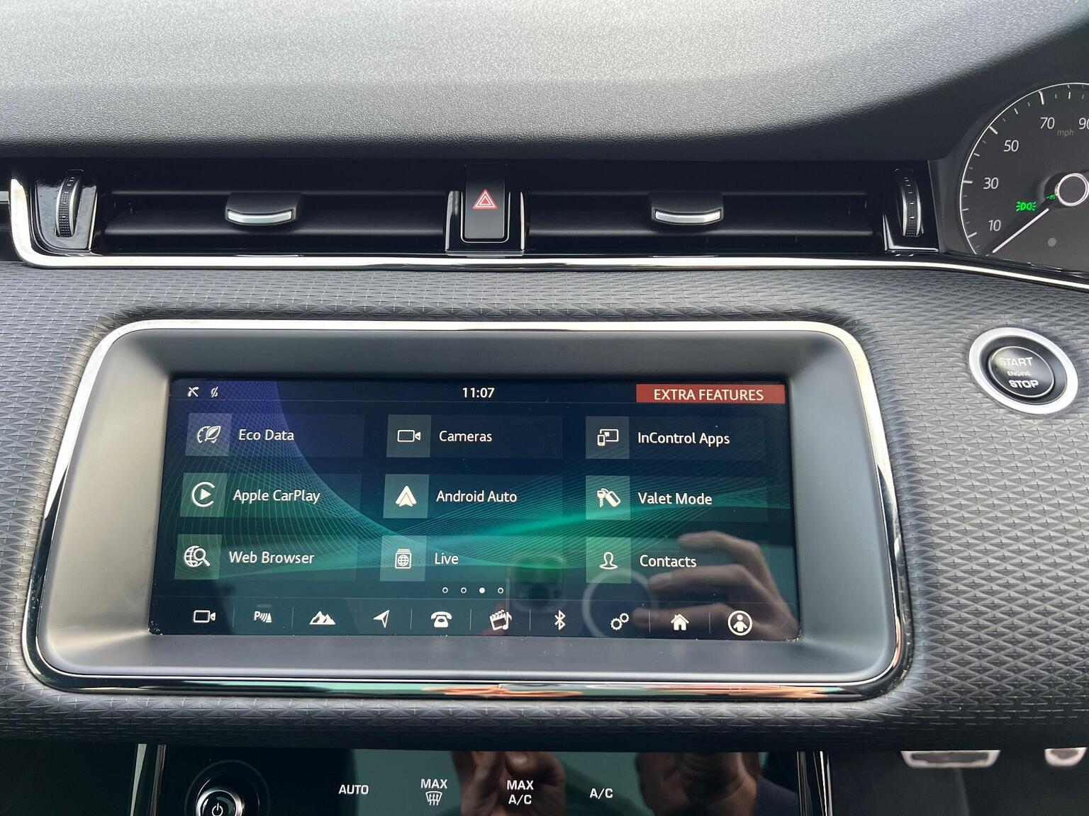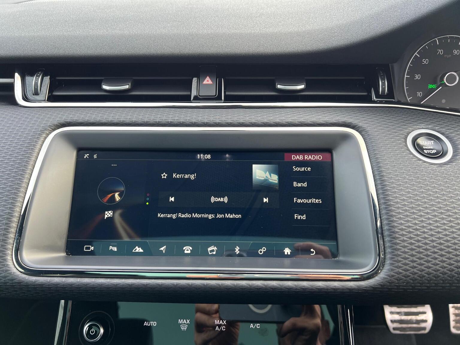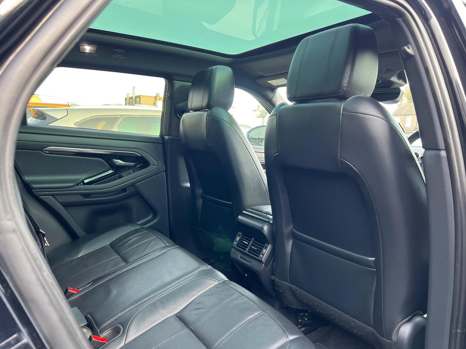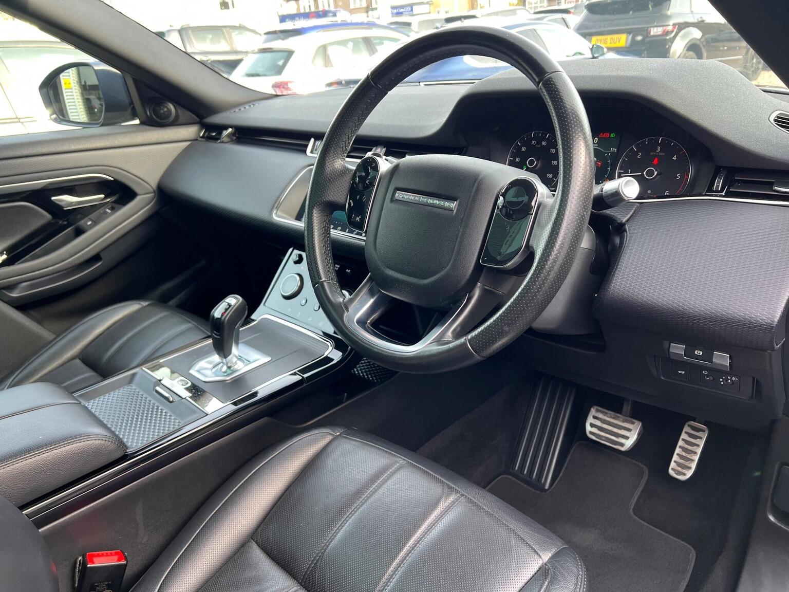 10-Way Heated Electric Front Seats, 10in Touch Pro, 18in Alloy Wheels - 5-Split Spoke - Style 5074 - Gloss Sparkle Silver, 40-20-40 Split Fold Rear Seat, ABS - Anti Lock Braking System, ATPC - All Terrain Progress Control, Airbags - Driver Knee, Airbags - Front - Driver and Front Passenger, All Season Tyres, Analogue Dials with Central TFT Display, Android Auto, Apple CarPlay, Auto-Dimming - Power Fold - Heated Door Mirrors with Approach Lights, Auto-Dimming Interior Rear View Mirror, Autonomous Emergency Braking, Black Gearshift Paddles, Bluetooth Connectivity, Body Coloured Roof, Brake Pad Wear Indicator, Bright Metal Pedals, Carpet Mats, Chrome Treadplates, Climate Control - Rear Vents, Cruise Control and Speed Limiter, Customer Configurable Autolock, D180 Badge, DAB - Digital Audio Broadcast, DSC - Dynamic Stability Control, Driver Condition Monitor, EBA - Emergency Brake Assist, EBD - Electronic Brake-Force Distribution, EPAS - Electronic Power Assisted Steering, ETC - Electronic Traction Control, Efficient Driveline, Electric Parking Brake, Electric Windows with One-Touch Open-Close and Anti-Trap, Evoque and R-Dynamic Badge, Flush Deployable Door Handles, Front and Rear Parking Aid, HDC - Hill Descent Control, Headlining - Ebony Morzine, Heated Rear Window with Timer, Hill Launch Assist, InControl - Remote App, InControl Apps, Interior Lighting, Intrusion Sensor, LED Headlights, Lane Keep Assist, Locking Wheel Nuts, Low Traction Launch, Manual Headlight Levelling, Manual Tailgate, Manually Adjustable Steering Column, Navigation Pro, Overhead Lighting Console, Overhead Stowage for Sunglasses, Passive Front Headrests, Passive Suspension, Perforated Leather Steering Wheel, Power Operated Child Locks, Power Socket Pack 1, Pro Services and Wi-Fi Hotspot, Push Button Start, R-Dynamic Exterior Pack, RSC - Roll Stability Control, Rain Sensing Windscreen Wipers and Automatic Headlights - Automatic, Rear Fog Lights, Rear ISOFIX, Rear View Camera, S Badge, Seat Belt Reminder, Seats - Rear Centre Head Restraint, Shadow Atlas - RANGE ROVER - Bonnet and Tailgate Script, Side Curtain Airbags and Thorax, Smart Settings, Sound System, Sun Visors - Illuminated Vanity Mirrors, TPMS - Tyre Pressure Monitoring System, Tailgate Spoiler, Terrain Response 2, Torque Vectoring, Traffic Sign Recognition and Adaptive Speed Limiter, Trim Finish - Gradated Linear Dark Aluminium, Twin Front Cupholders with Cover, Twin Sliding Front Centre Armrest, Two-Zone Climate Control, Tyre Repair System, Voice Control, Windscreen - Heated, Windscreen Washer Jets - Heated